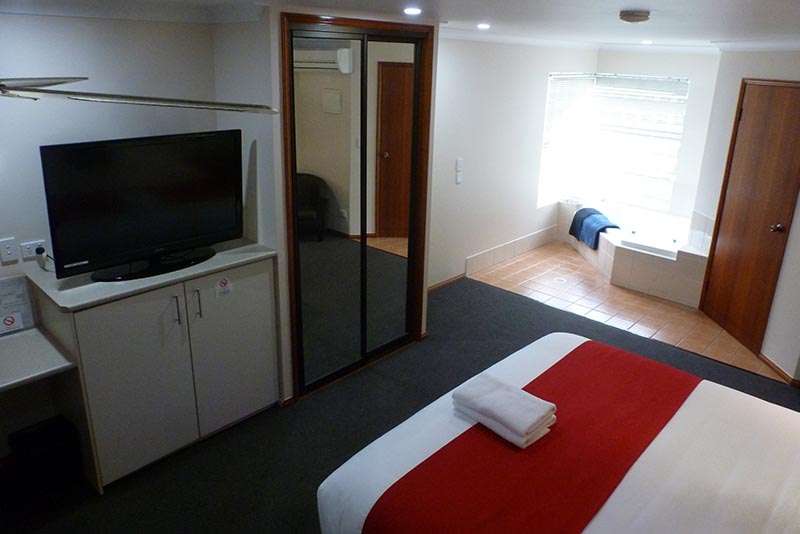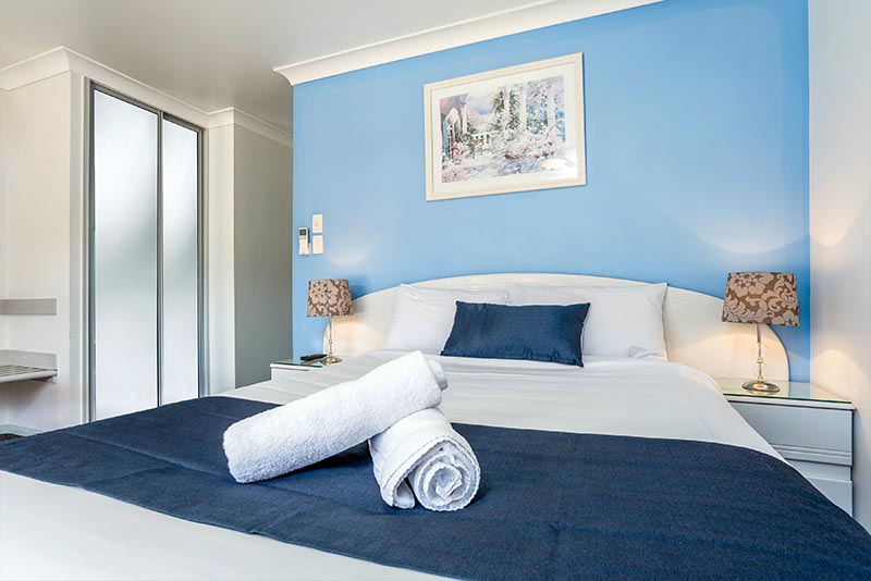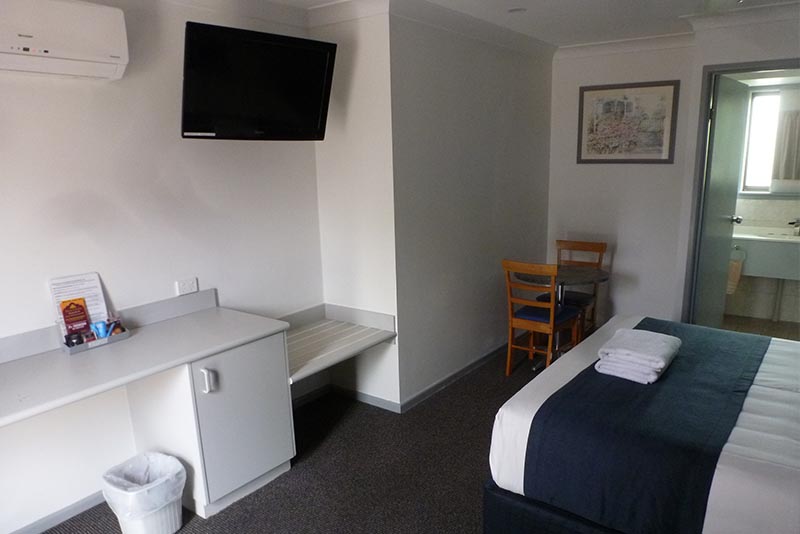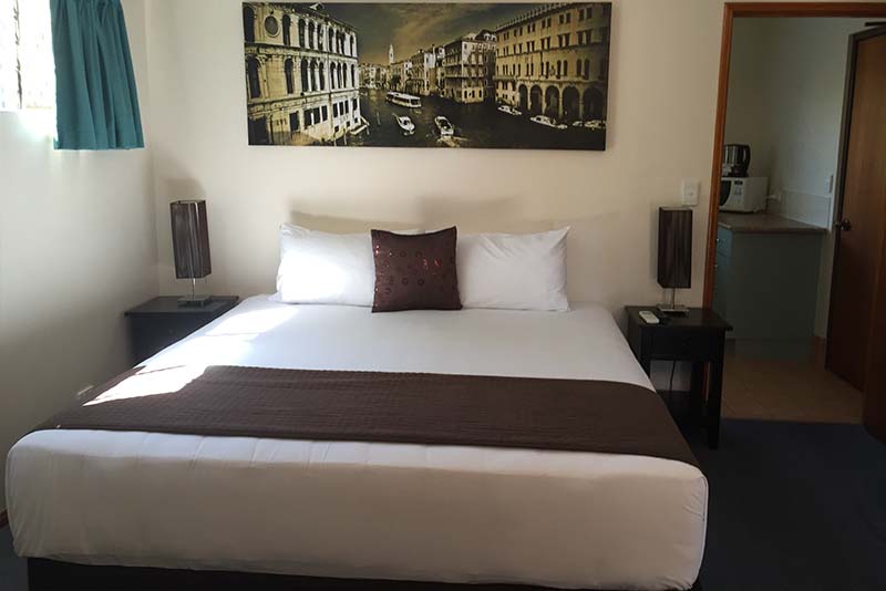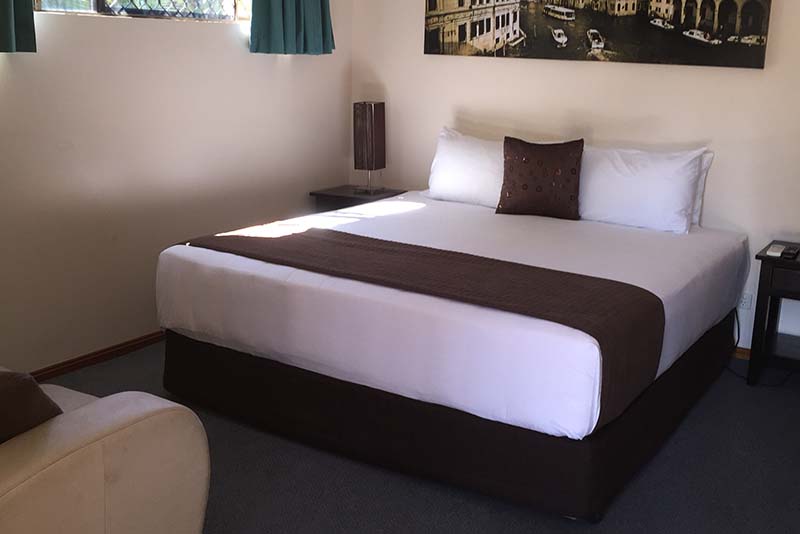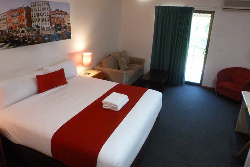 Our Executive King rooms have the added convenience of a private outdoor balcony area. These rooms contain king size luxurious orthopaedic beds for those with back issues or sleeping discomforts. All Rooms have split system air-conditioning, Tea & coffee facilities, micro-wave ovens, large screen TV, luxurious towels & linens.